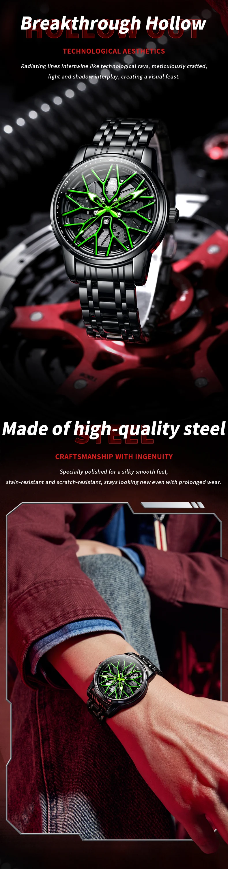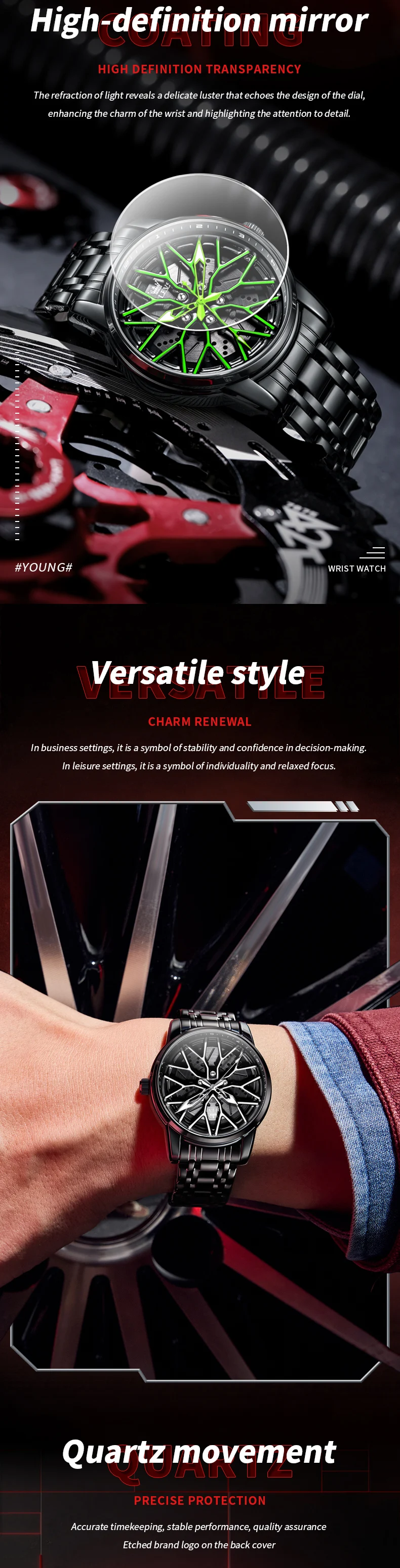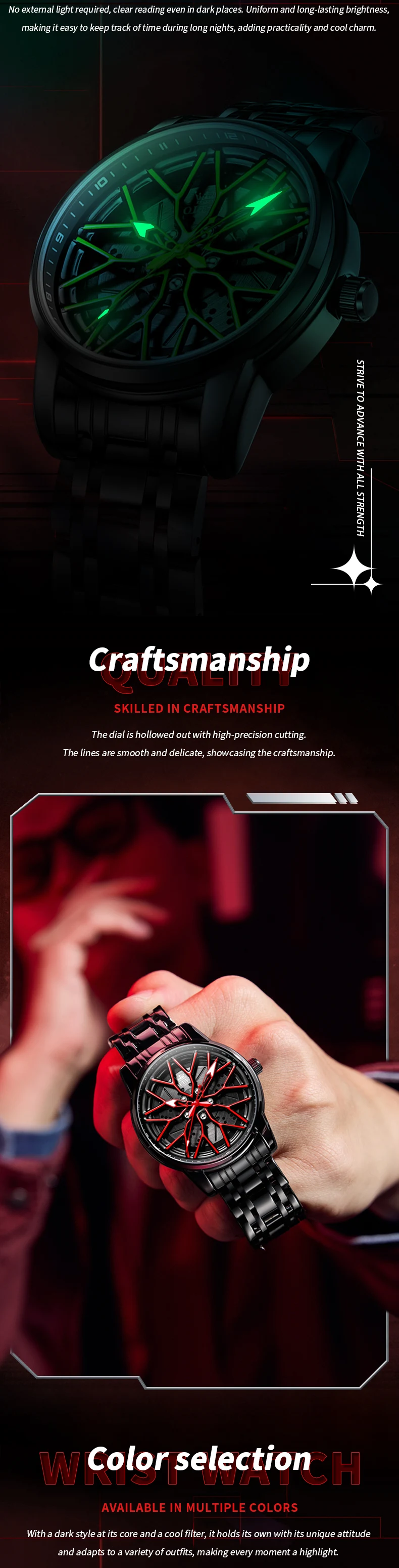 Spinning Skeleton Quartz Watch Waterproof Luminous Stainless Steel Watches 2025