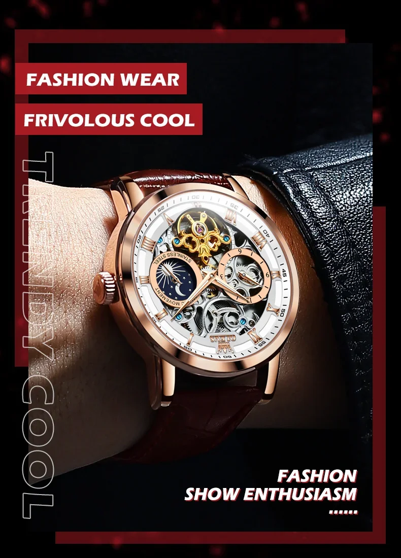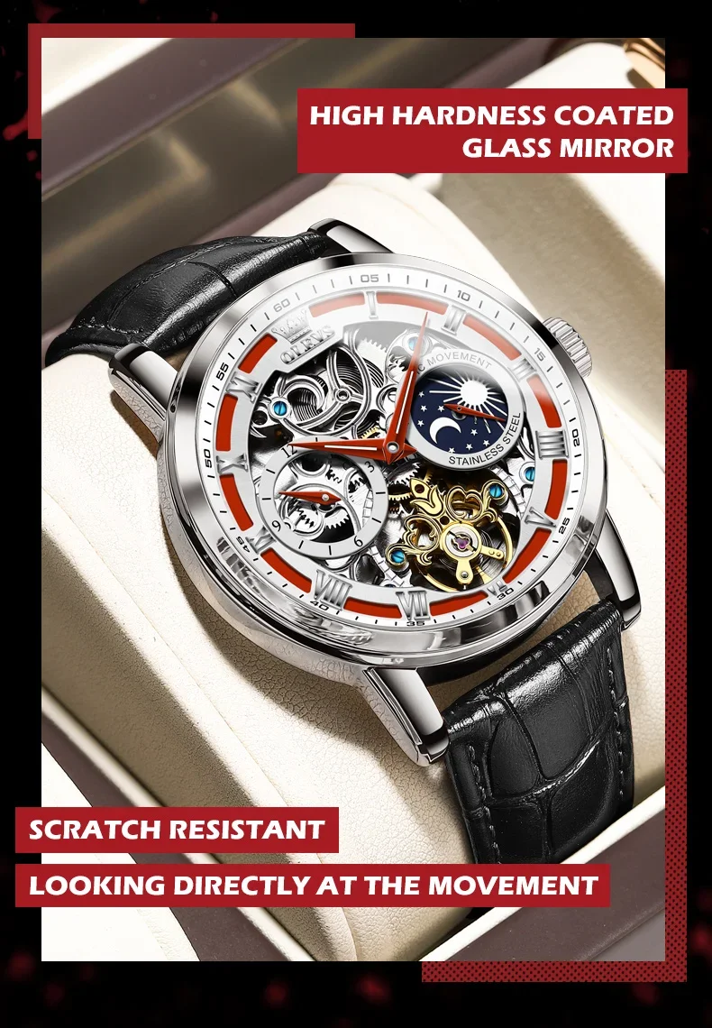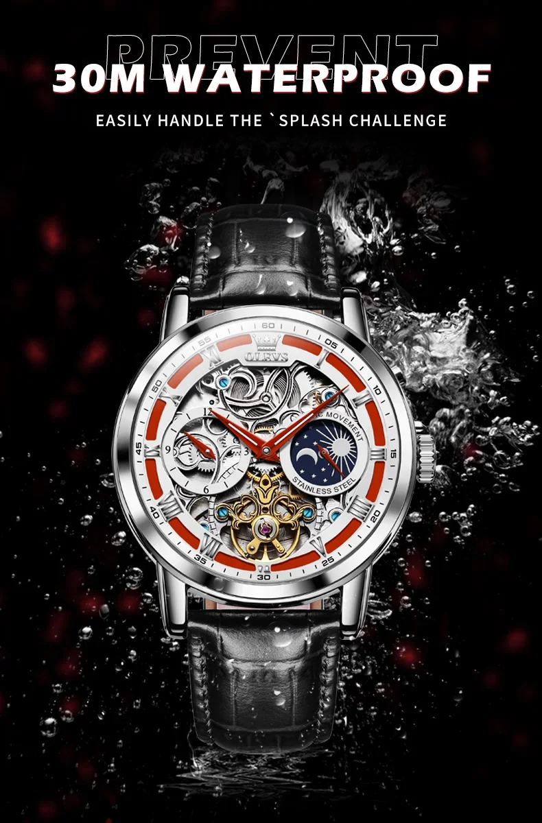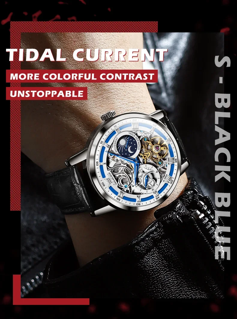 Feature: Skeleton,tourbillon,Moon Phase,water proof,Shock ResistantDIVERMoon Phase