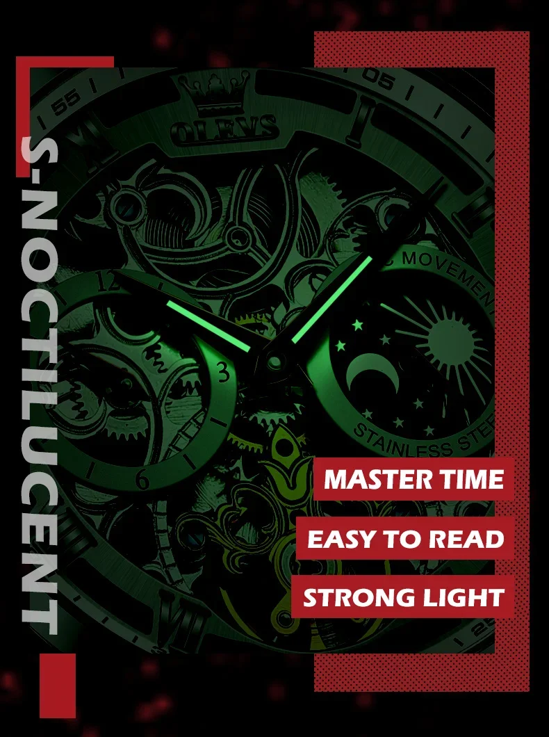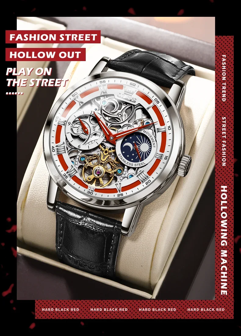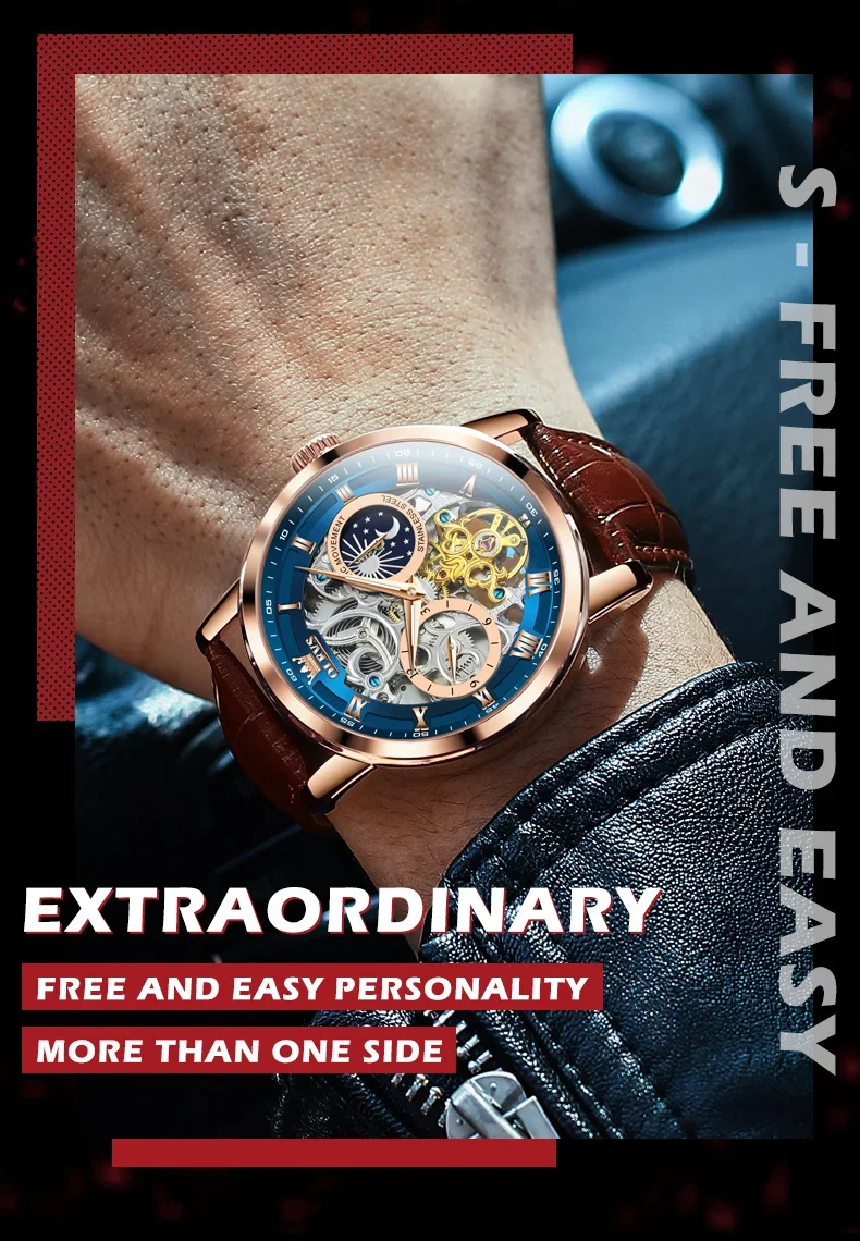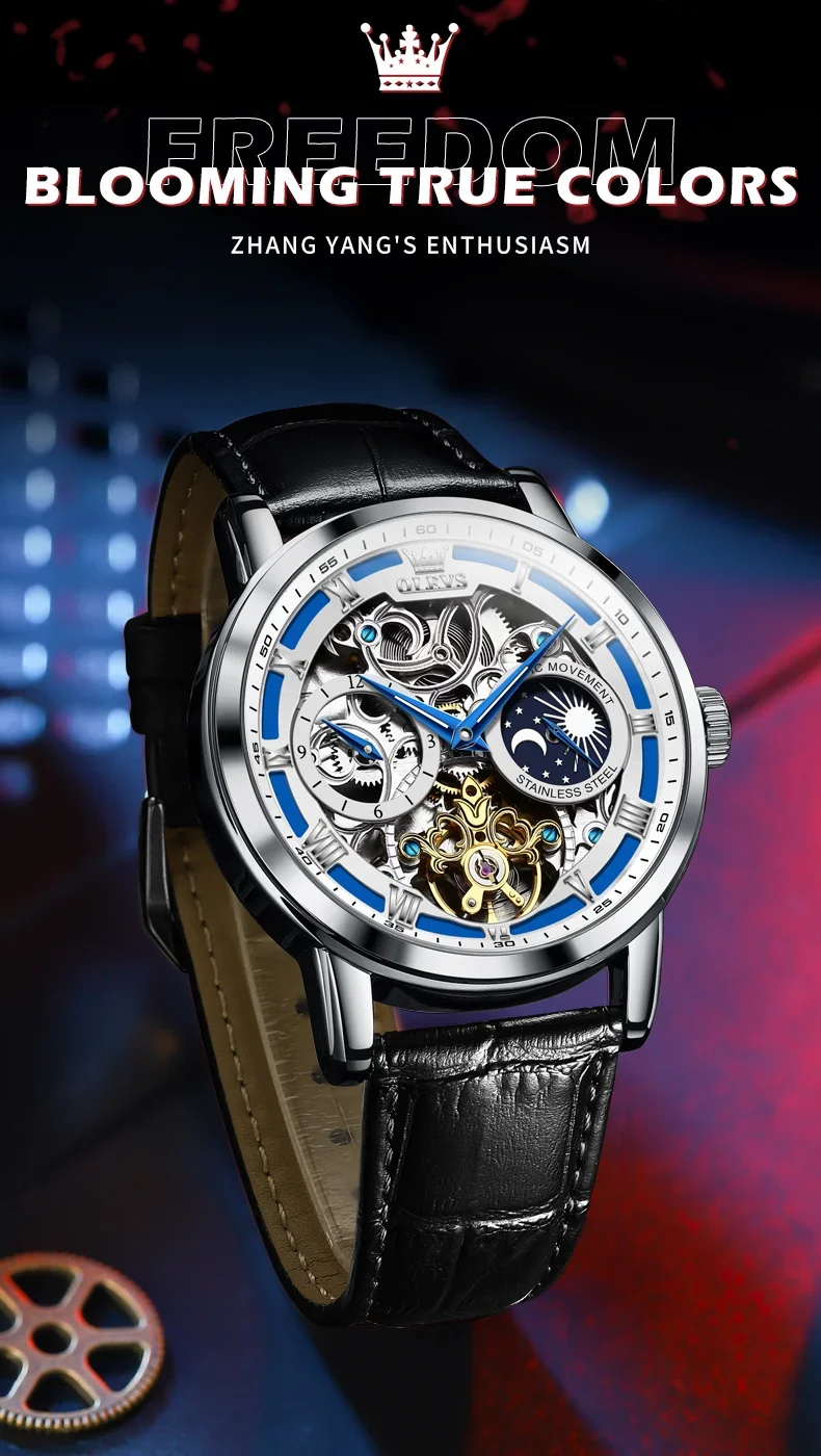 Feature: Skeleton,tourbillon,Moon Phase,water proof,Shock ResistantDIVERMoon Phase