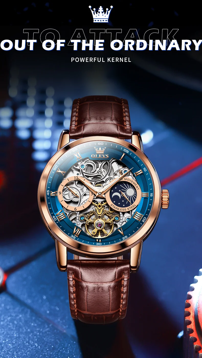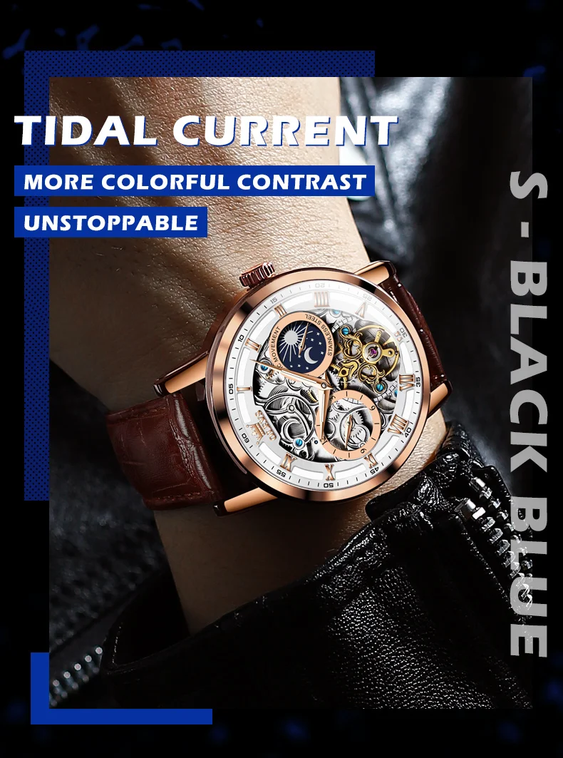 Feature: tourbillon,Skeleton,Luminous,Moon Phase,water proof