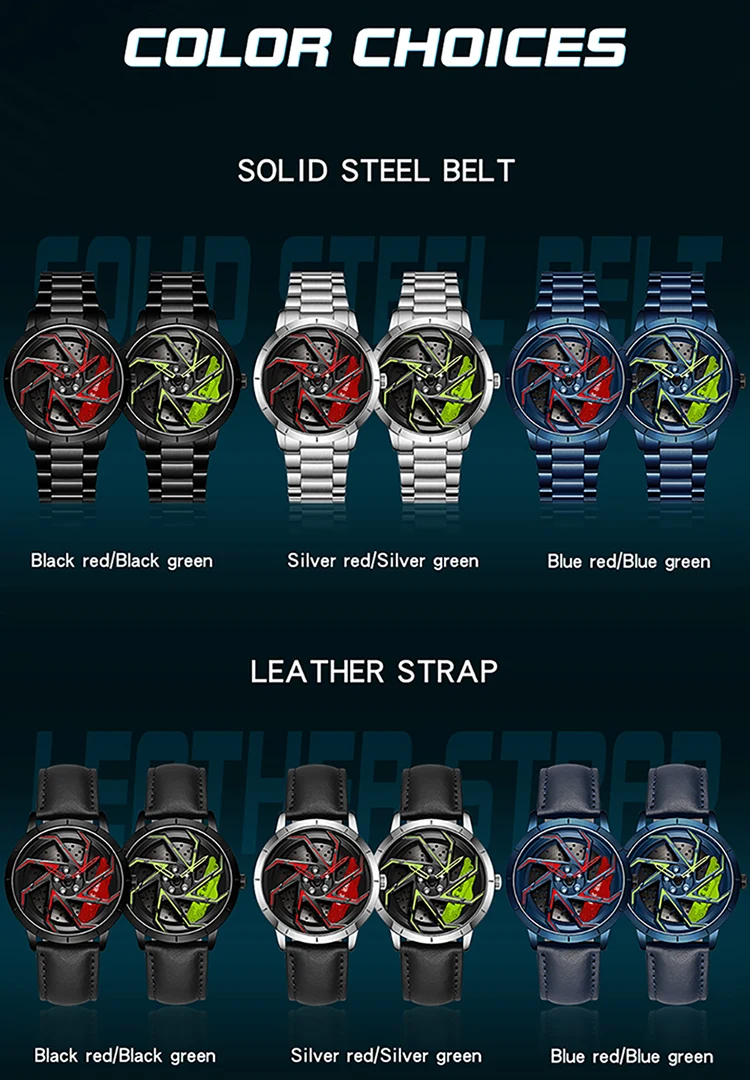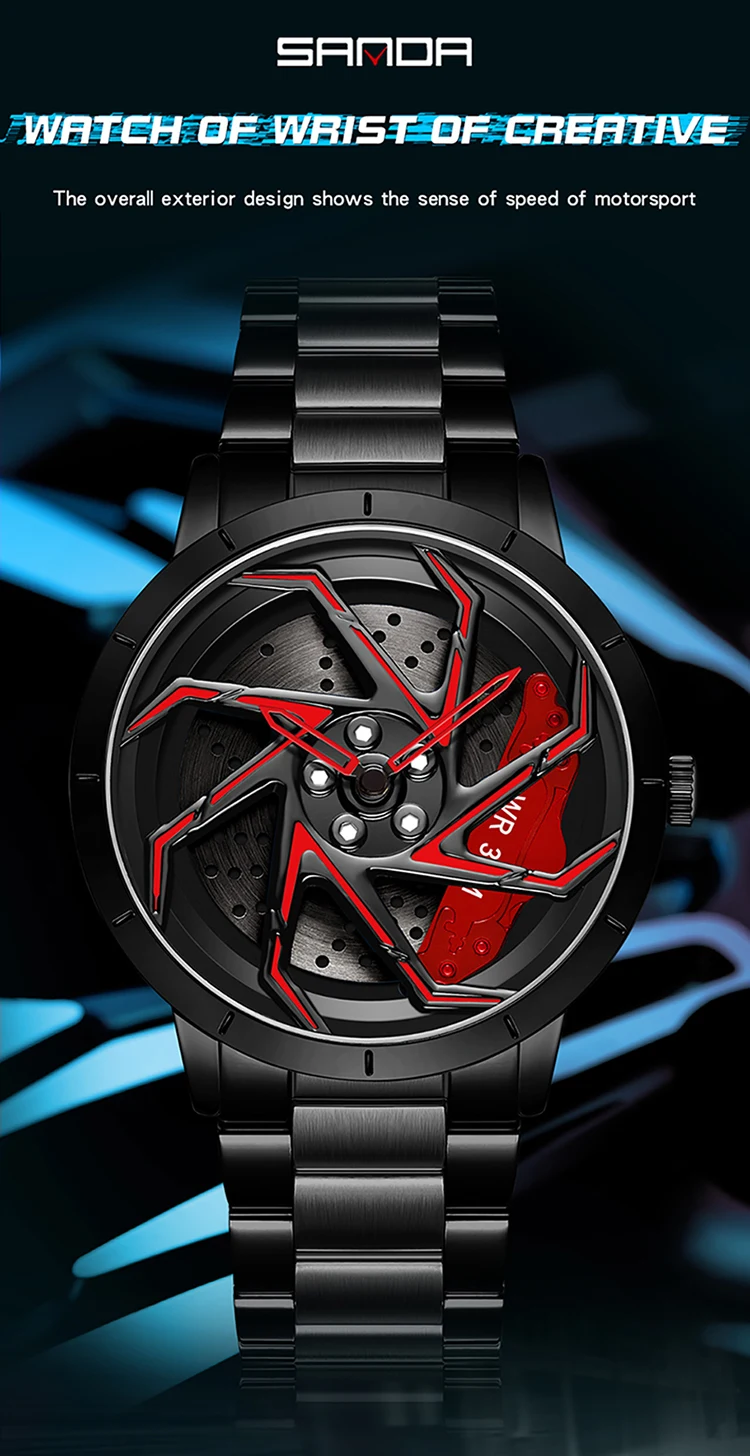 Spinning Steel Waterproof Sport Watch 360 Degree Rotating Wheel Rim Dial Quartz